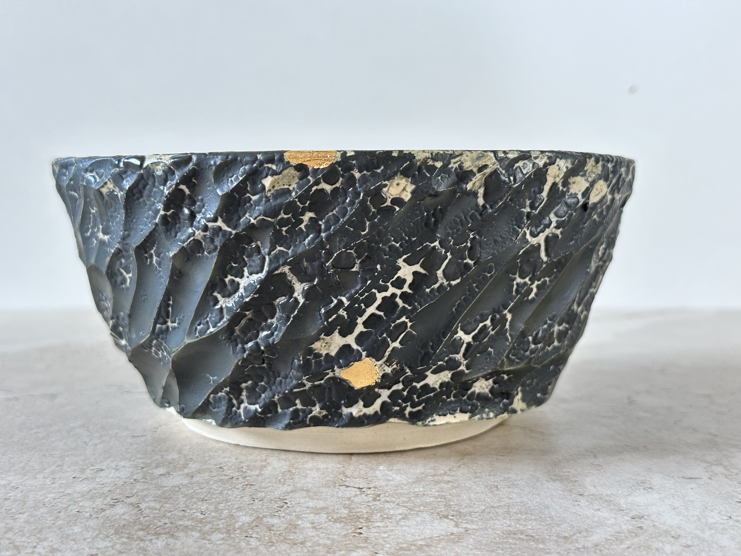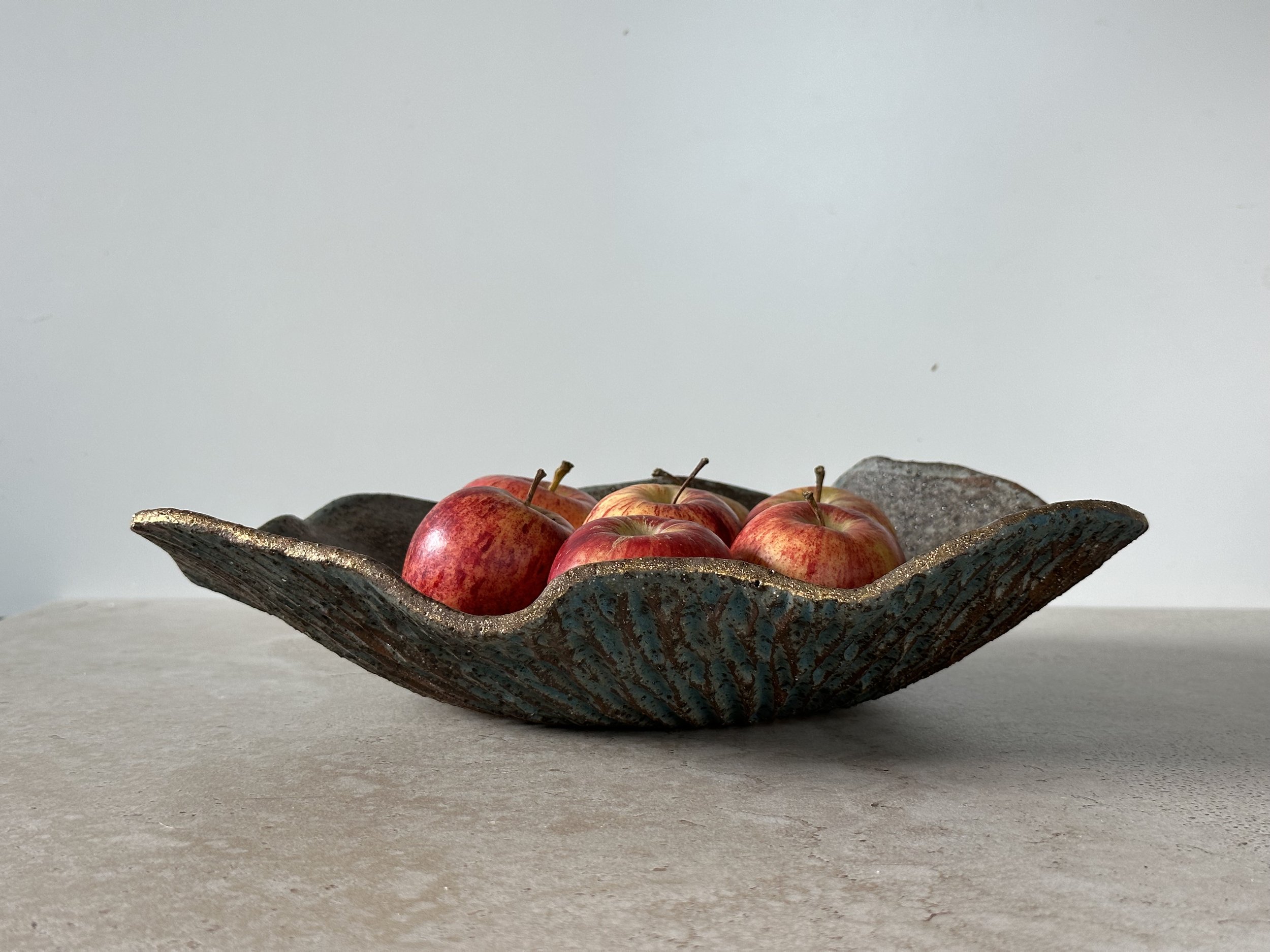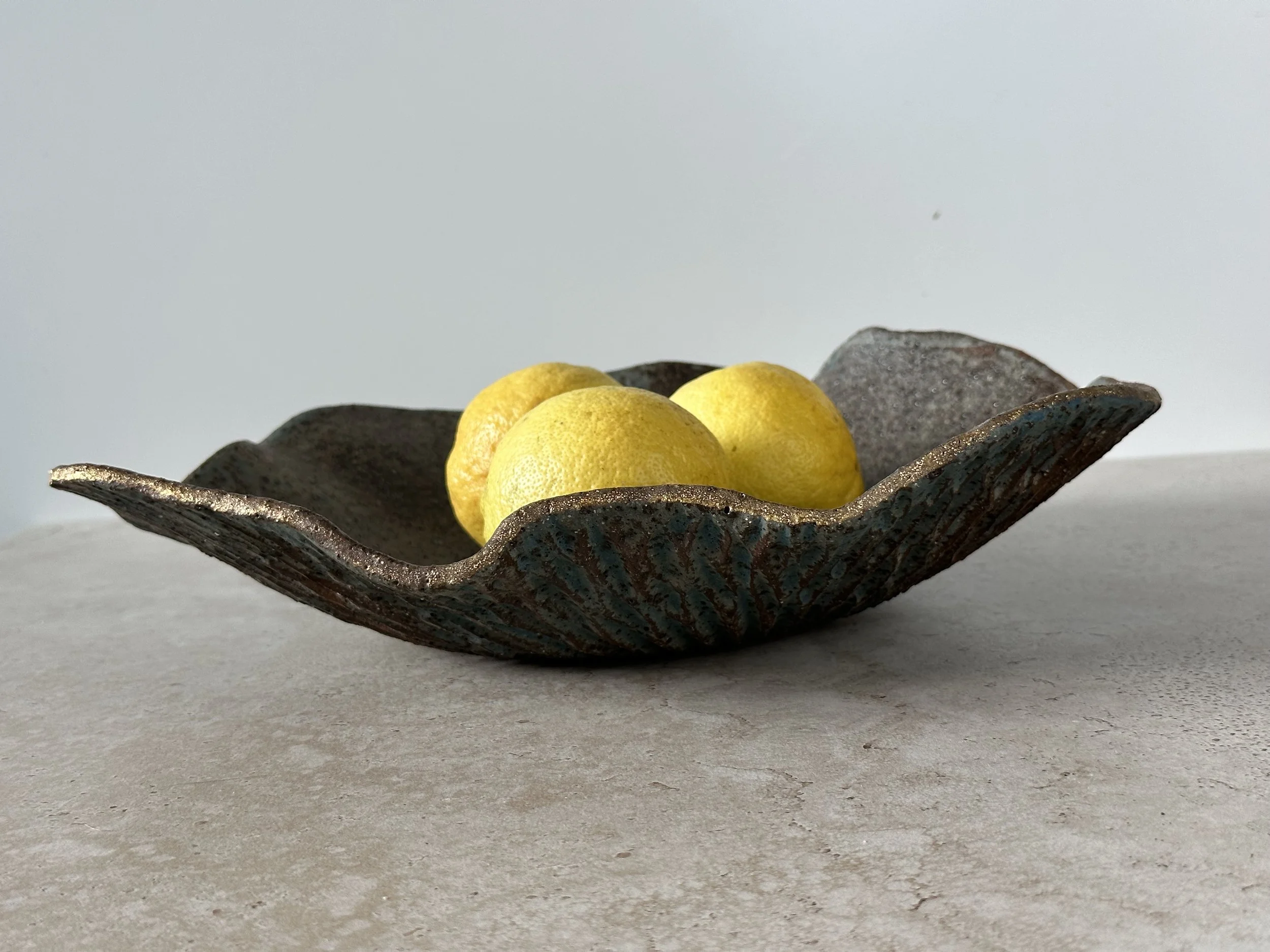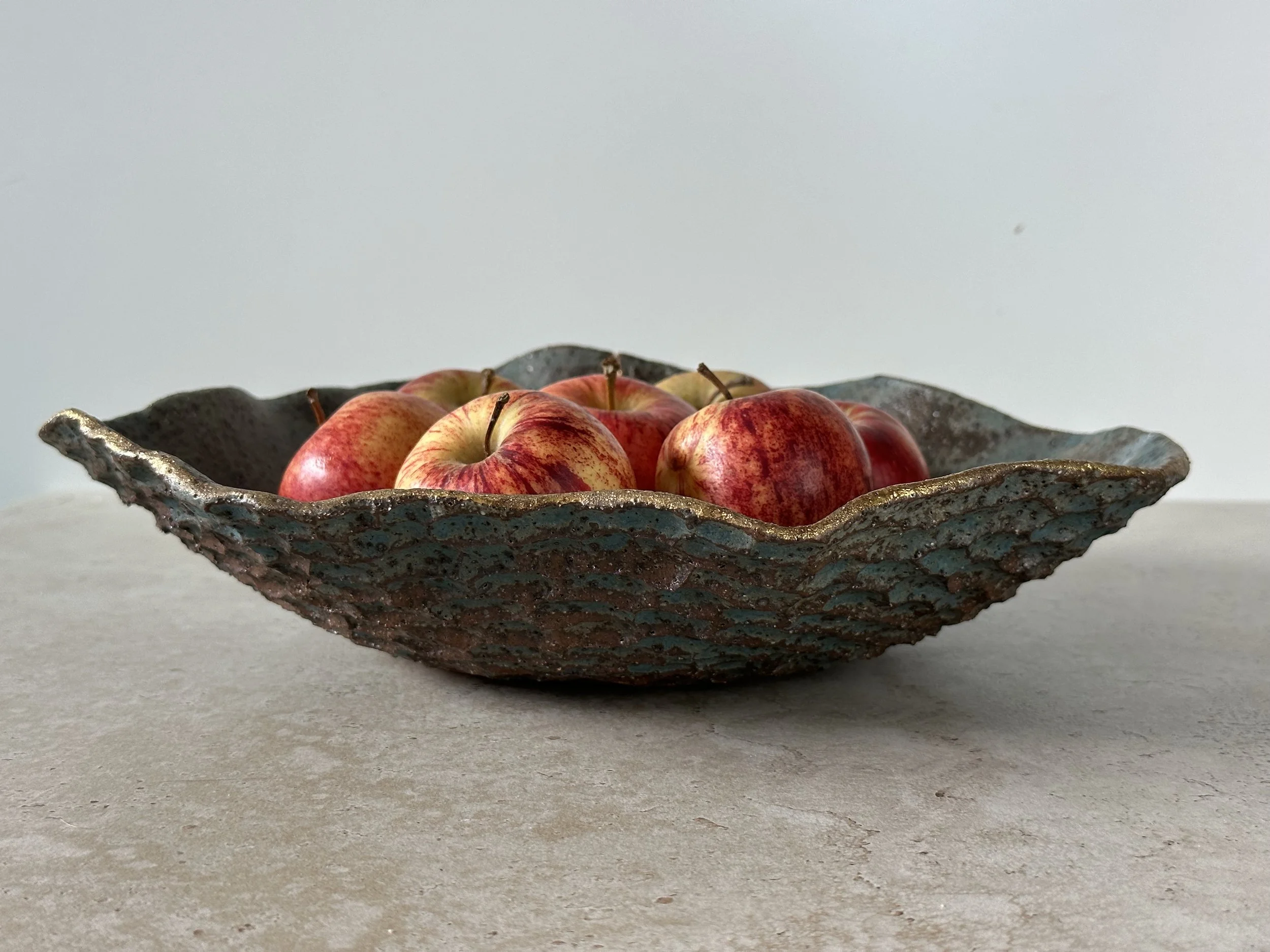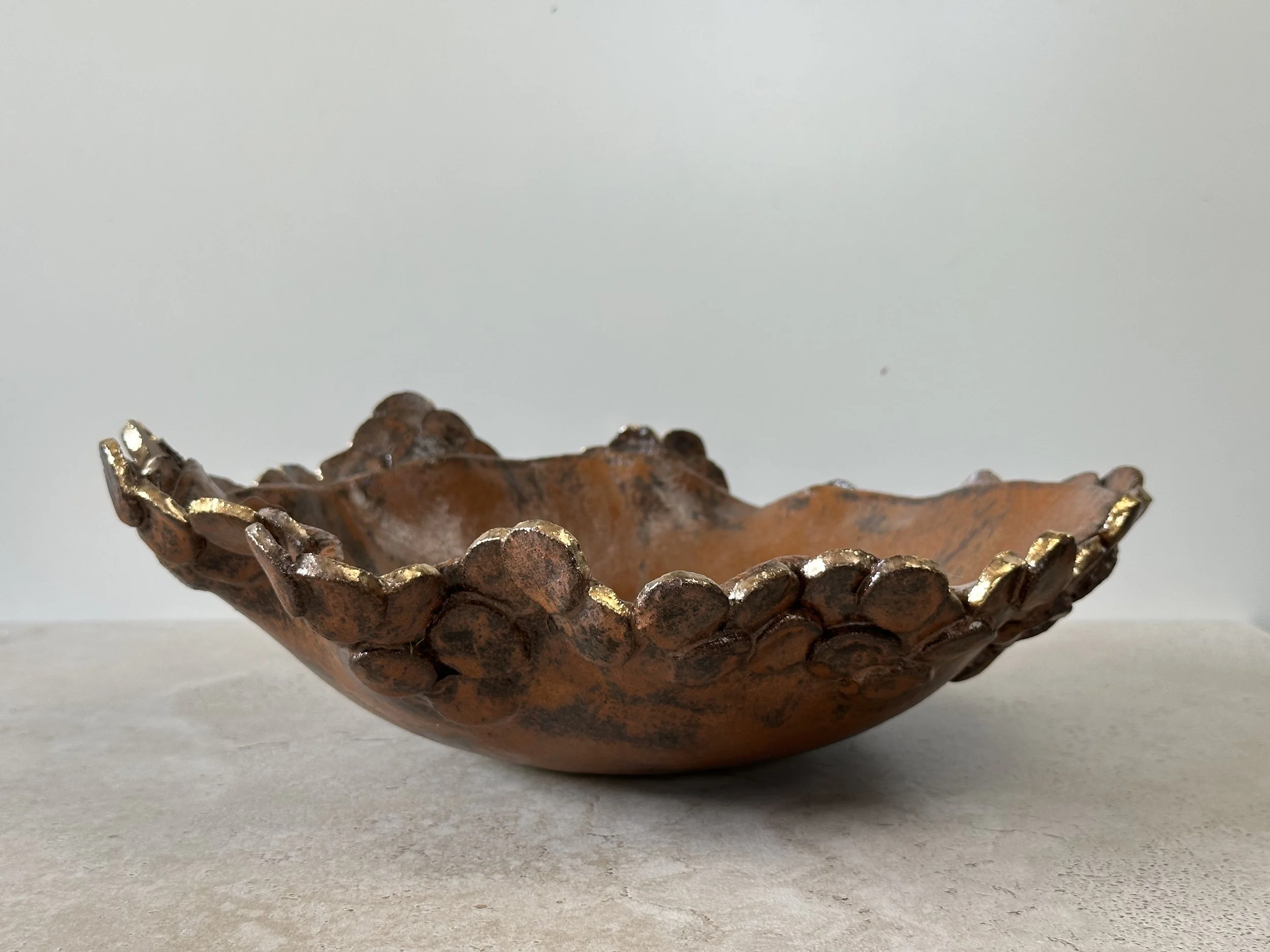 "My ceramic work embraces organic forms and imperfect beauty: a reflection of the belief that our cracks, when gently healed, reveal strength, depth, and quiet gold."